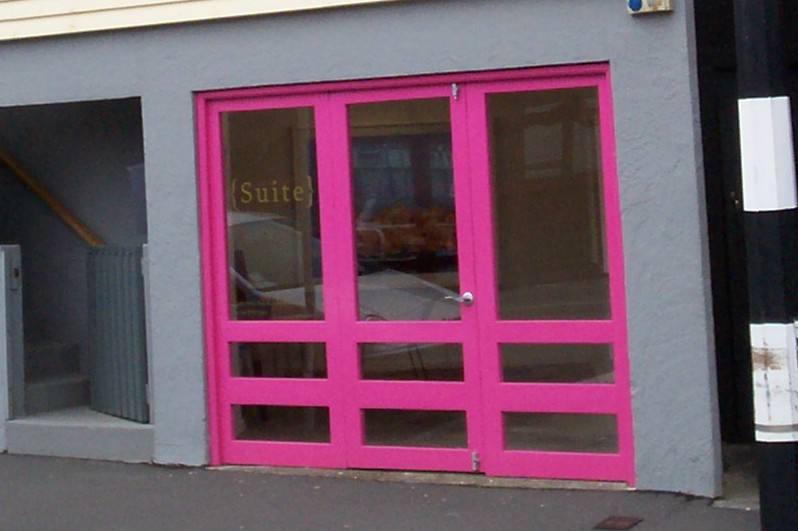 Suite Gallery (which recently moved from Newtown to Cuba St) has a cute little gallery space in Oriental Bay, just opposite the boat sheds & Martin Bosley. It used to be a garage. It looks like this: