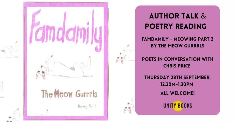 The Meow Gurrrls will be chatting with Chris Price at Unity this Thursday lunchtime 28th September 2023 -come along!