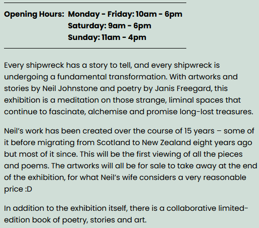 I’m very excited to be part of this upcoming exhibition, book launch and associated special events, with the fabulous Neil Johnstone.